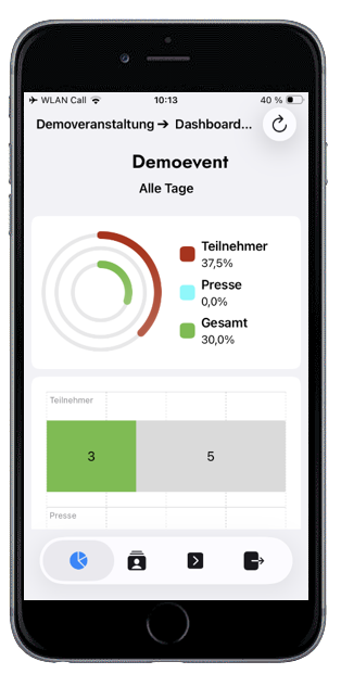 Mit der ePMSmobile-App haben Sie alle Vorteile unseres bewährten Teilnehmermanagement-Systems auf Ihrer Veranstaltung selbst in der Hand: